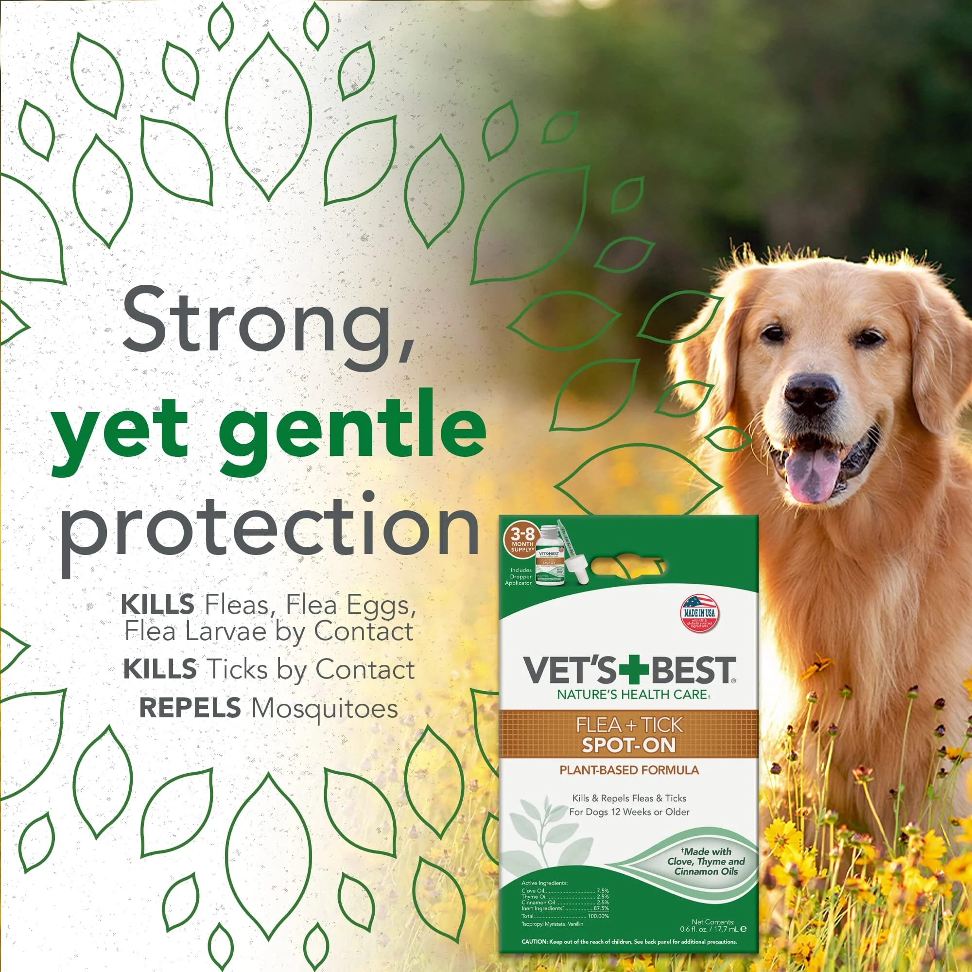 Vet's Best Plant Based Flea and Tick Spot-On Treatment Drops for Dogs - 1.6 ml - Small - 4 Count